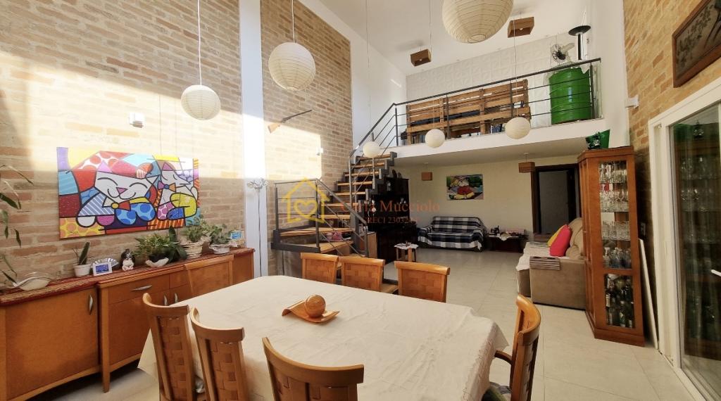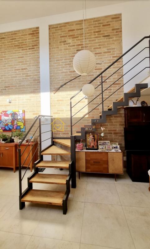 • Sala de estar com pé-direito de 6m e mezanino